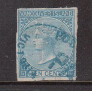 British Columbia #4 Used, fine - very fine with nice Victoria paid blue cancel, corner crease at upper left that is practically invisible, with certificate.