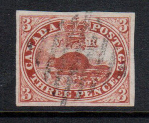 Canada #4iii Very fine used on cover, left sheet margin example tied by ideal Kingston Oct 1857 CDS cancel, the difficult hard wove ribbed paper, with certificate.