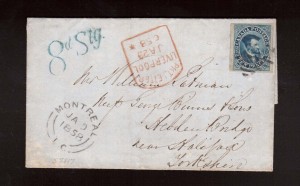 Canada #7iv Very fine used on rare cover, pos 53, choice with lovely eye appeal, the strong reentry variety, overpaying the 6d rate to USA or underpaying the 12p rate, with certificate.