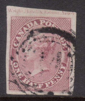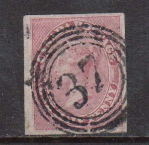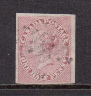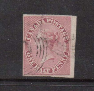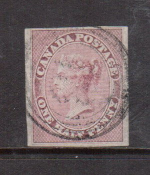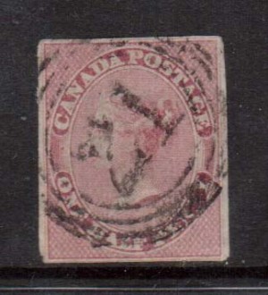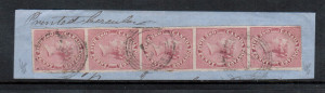 Canada #8b Extra fine used strip of five on vertically ribbed paper on piece with ideal 4 ring 37 cancels, remarkable quality and a great showpiece, with certificate.