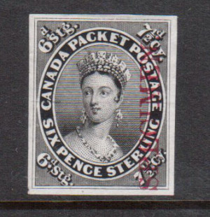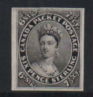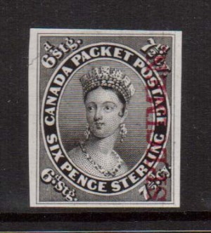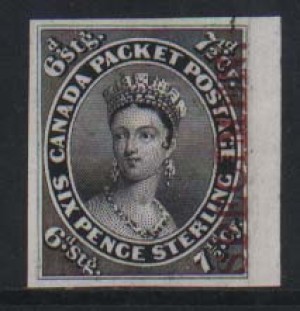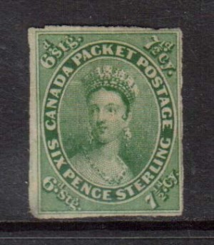 Canada #9iii Mint, fine, stitch watermark, unused (no gum), small thin at lower left corner, an unique rarity in mint condition, only listed as used, with certificate.