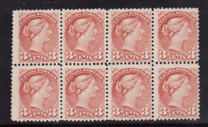 Canada #37a Mint never hinged showpiece block of eight, four very fine stamps, four fine stamps, all gorgeous and fresh, most likely the largest remaining multiple, with certificate. Catalog: $11400.00 (As singles)