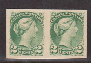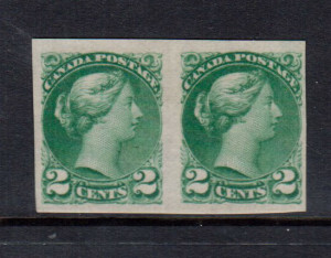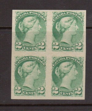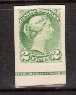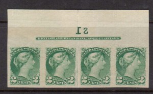 Canada #36iii Extra fine mint imperforate strip of four showing complete BABN imprint, full original gum, hinged, this strip is two pairs sensibly hinged together, has tremendous eye appeal