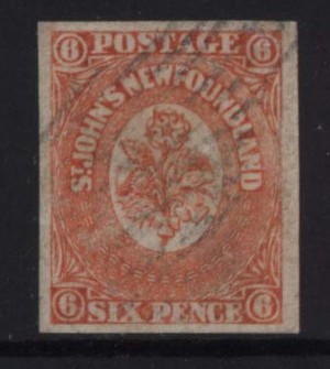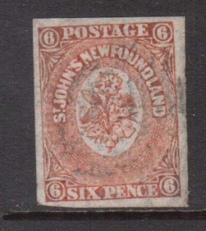 Newfoundland #13 Extra fine used gem, four huge margins, ranks among the finest known, with certificate.